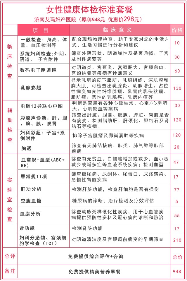 ①济南艾玛妇产医院优惠政策原价948元套餐现价298元。