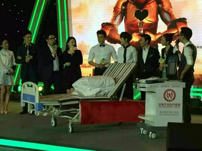 江苏卫视大型原创真人秀节目《为她而战》是档娱乐圈婚姻质量检验报告节目。针对娱乐圈情侣、夫妻高分手率,用轻松、实践的方式交出份透明“婚姻质检报告”。首期嘉宾有李湘、王岳伦,陆毅、鲍蕾,蔡少芬、张晋,何建泽、陶昕然等,在现场互动环节,明星丈夫们体验了次分娩阵痛的感觉。作为本次“疼痛制造者”济南艾玛妇产医院受邀加盟。