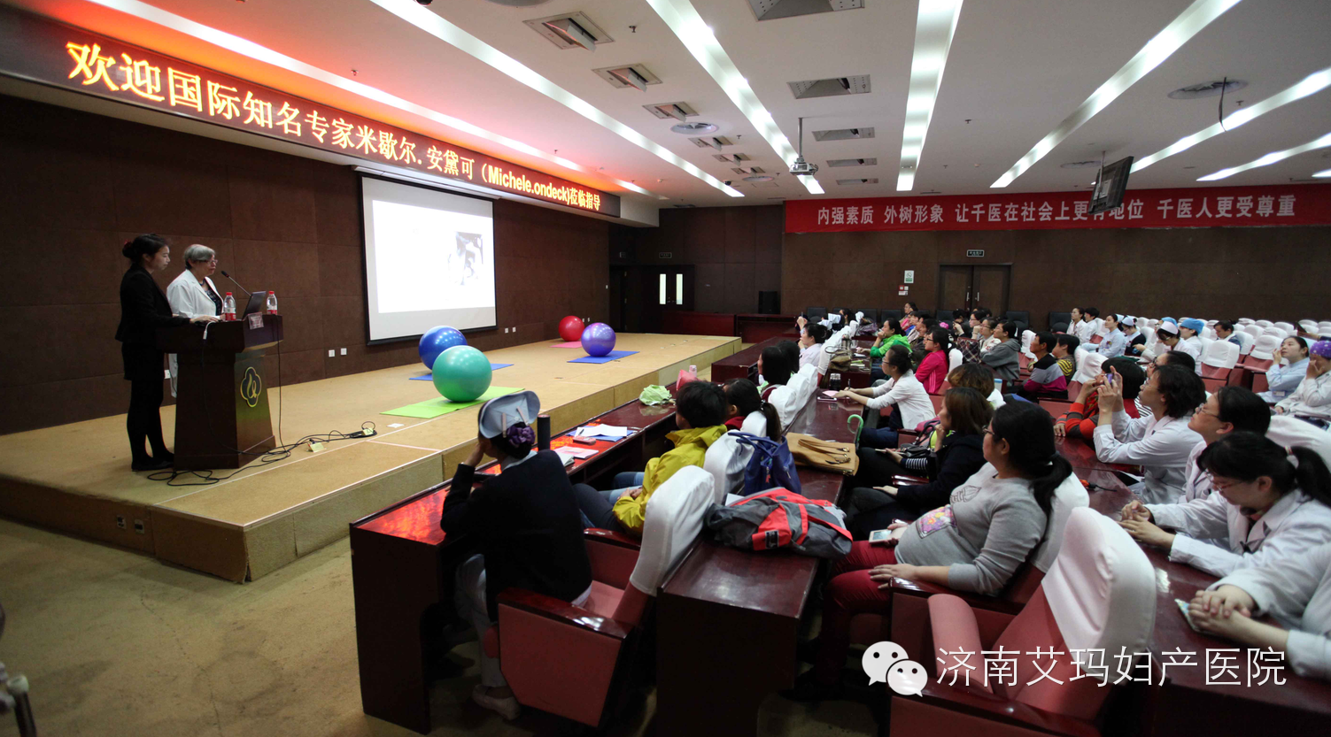 Michele Ondeck女士与千佛山医院产科医务人员分享拉玛泽分娩技术相关课程,全体医护人员积极参加。