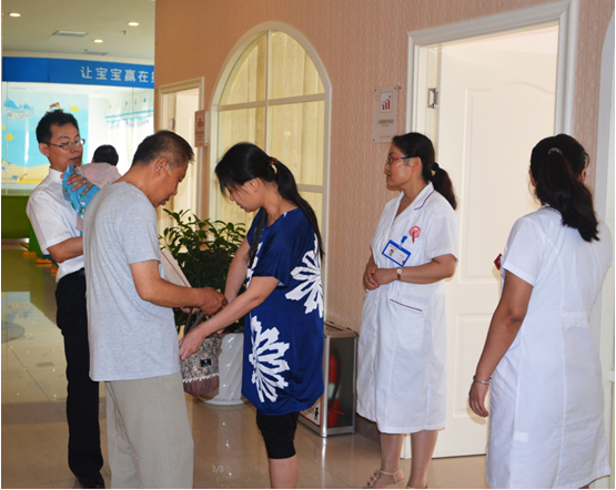 2015年6月14日上午10点,济南艾玛妇产医院迎来了熟悉的家人。刘女士带着出生43天的小宝宝,在全体家人的陪同下重回济南艾玛妇产医院,特意来院对产科门诊主任刘红燕表达感谢,并对艾玛全体医护送上锦旗,以表全家人的谢意。辣妈刘女士脸上洋溢着幸福与感激,与第次来艾玛时的紧张、焦虑相比,精神状态恢复的非常好。