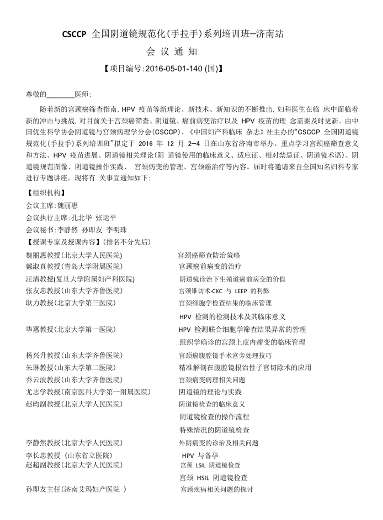 12月2日—4日,由中优生科学协会阴道镜与宫颈病理学分会(csccp)、《中妇产科临床杂志》社、山东省医师协会妇产科医师分会阴道镜与宫颈病理学委员会、齐鲁晚报主办,济南艾玛妇产医院协办的“CSCCP全阴道镜规范化(手拉手)系列培训班--济南站”即将举办。20多位来自全知名妇科专家将进行专题讲座。