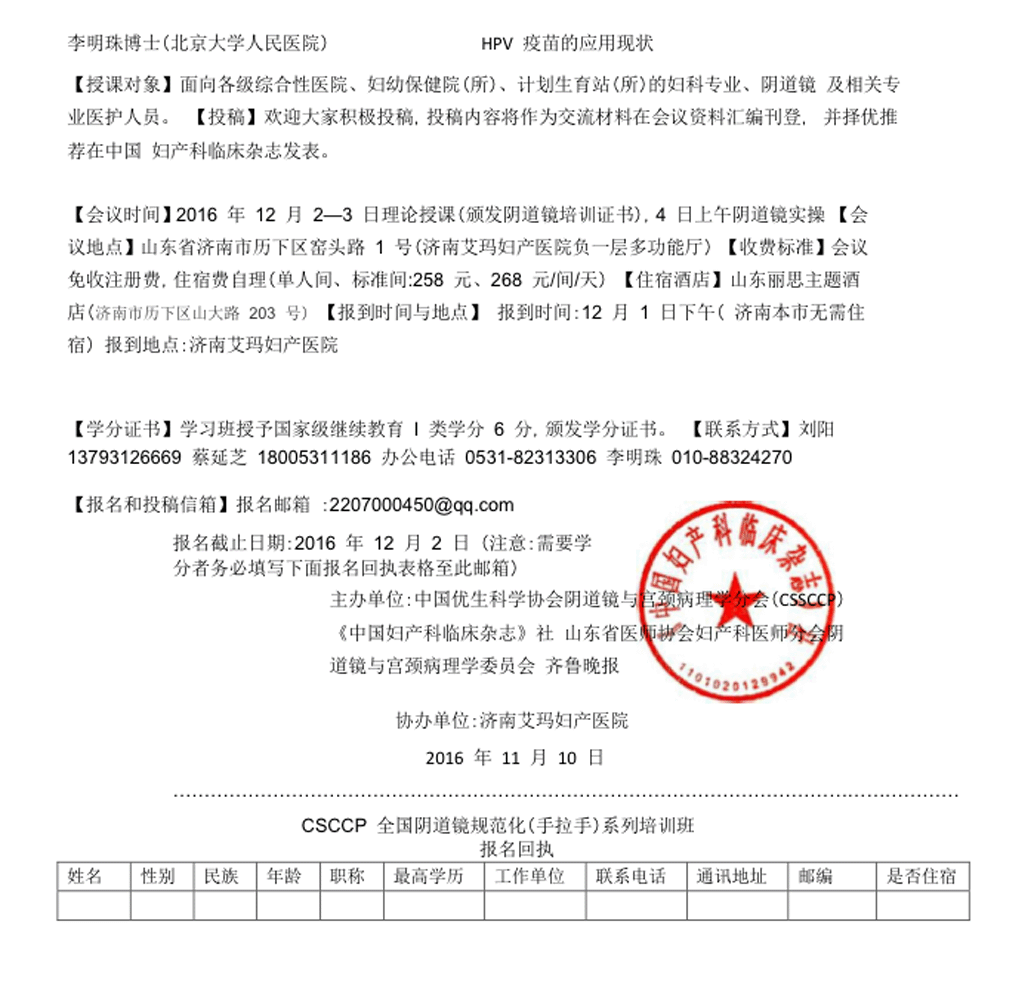 同时学习班会授予家级继续教育I类学分6分,颁发学分证书。12月4日上午,更有阴道镜的实操,欢迎相关医护人员积极报名。(注:本次培训名额有限。)