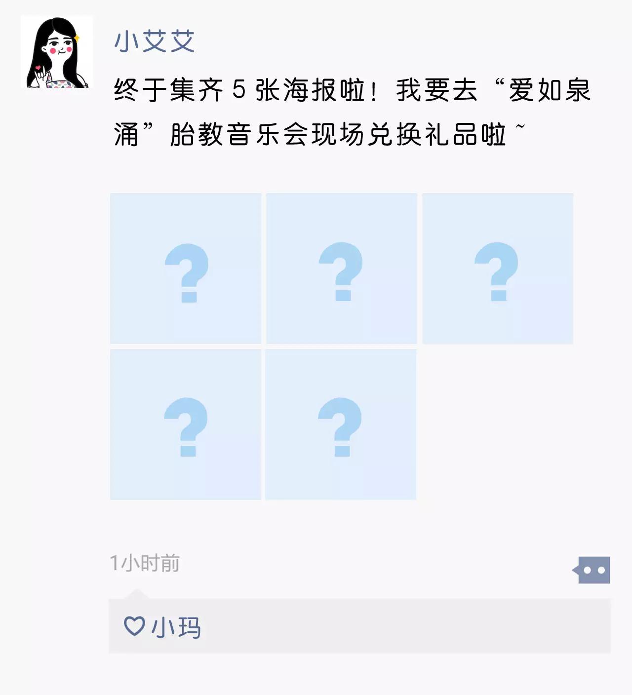 3、2月25日23:59分之前集满5张发朋友圈(包含五张图),集够20个zan,2月26日音乐会现场,将本条朋友圈内容展示给我们的工作人员,兑换份神秘礼品!