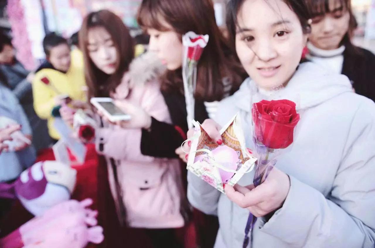 (浪漫桃花廊下,小仙女们正在“摇”福袋)