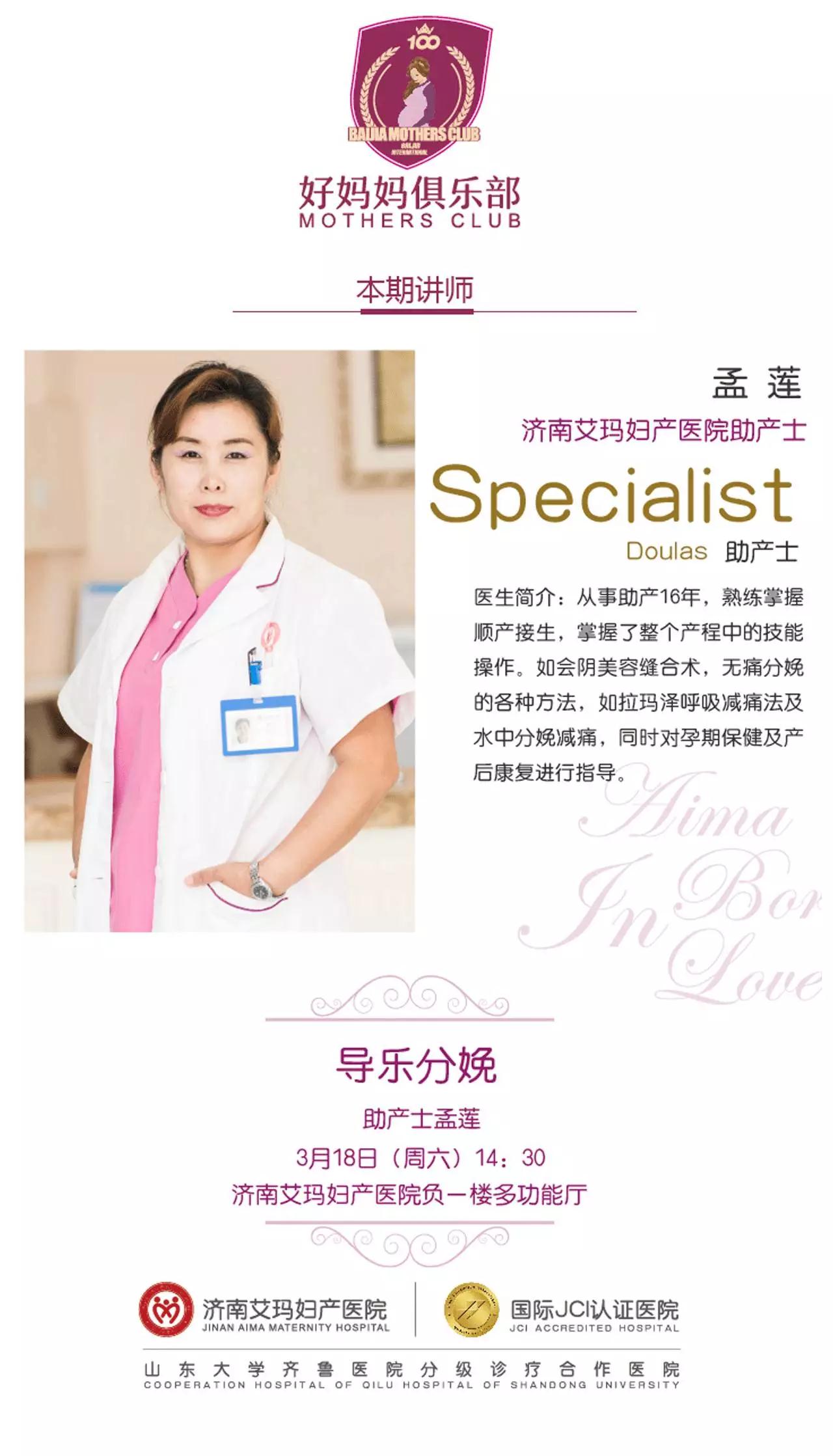 3月18日(本周六)来艾玛好妈妈俱乐部,金牌助产士孟莲告诉孕妈妈们如何利用“导乐”技术让分娩过程更舒适。