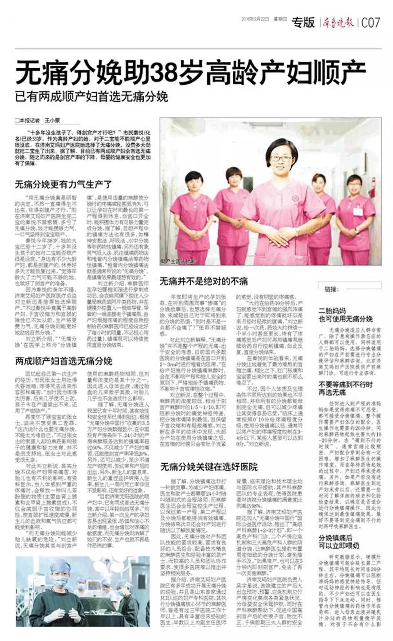 为了让更多孕妈妈享受到“无痛分娩”的服务,2016年6月,济南艾玛妇产医院与“无痛分娩中行”签署了协议,成为其合作医院,共同推动“无痛分娩”新技术在泉城的应用推广。