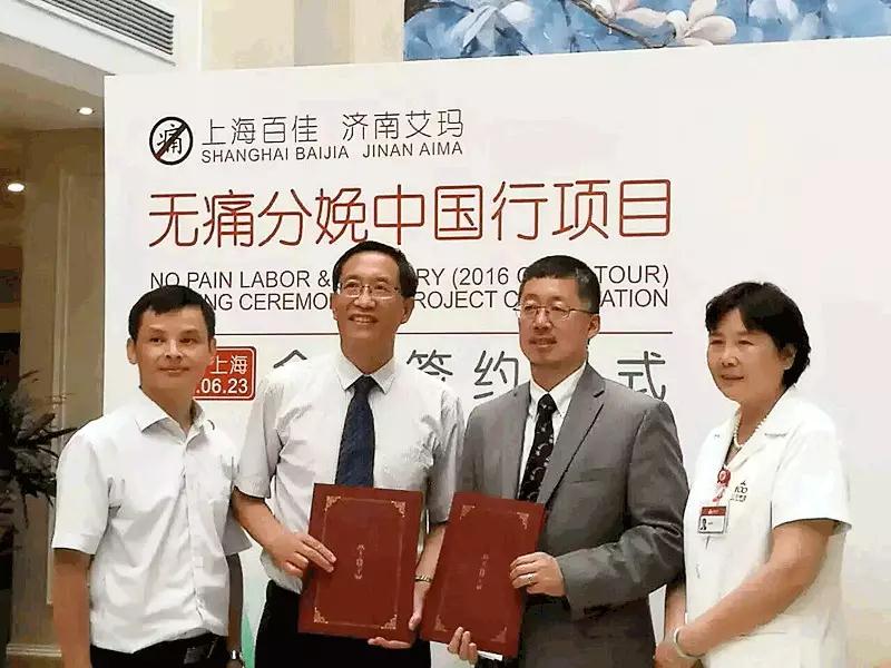 (2016年6月23日,“无痛分娩中行”与济南艾玛妇产医院签署项目合作协议)