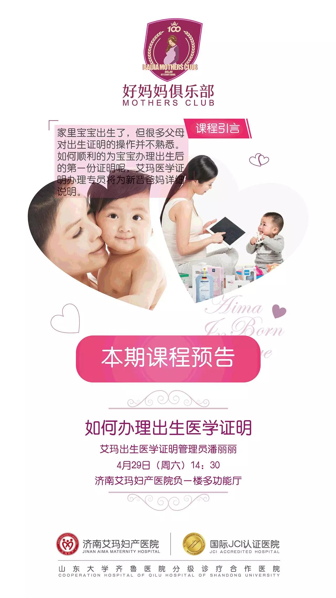 如何顺利的为宝宝办理出生后的第份证明呢?本月29日(周六)来艾玛好妈妈俱乐部,艾玛妇产医学证明办理专员潘丽丽将为新晋爸妈详细说明。