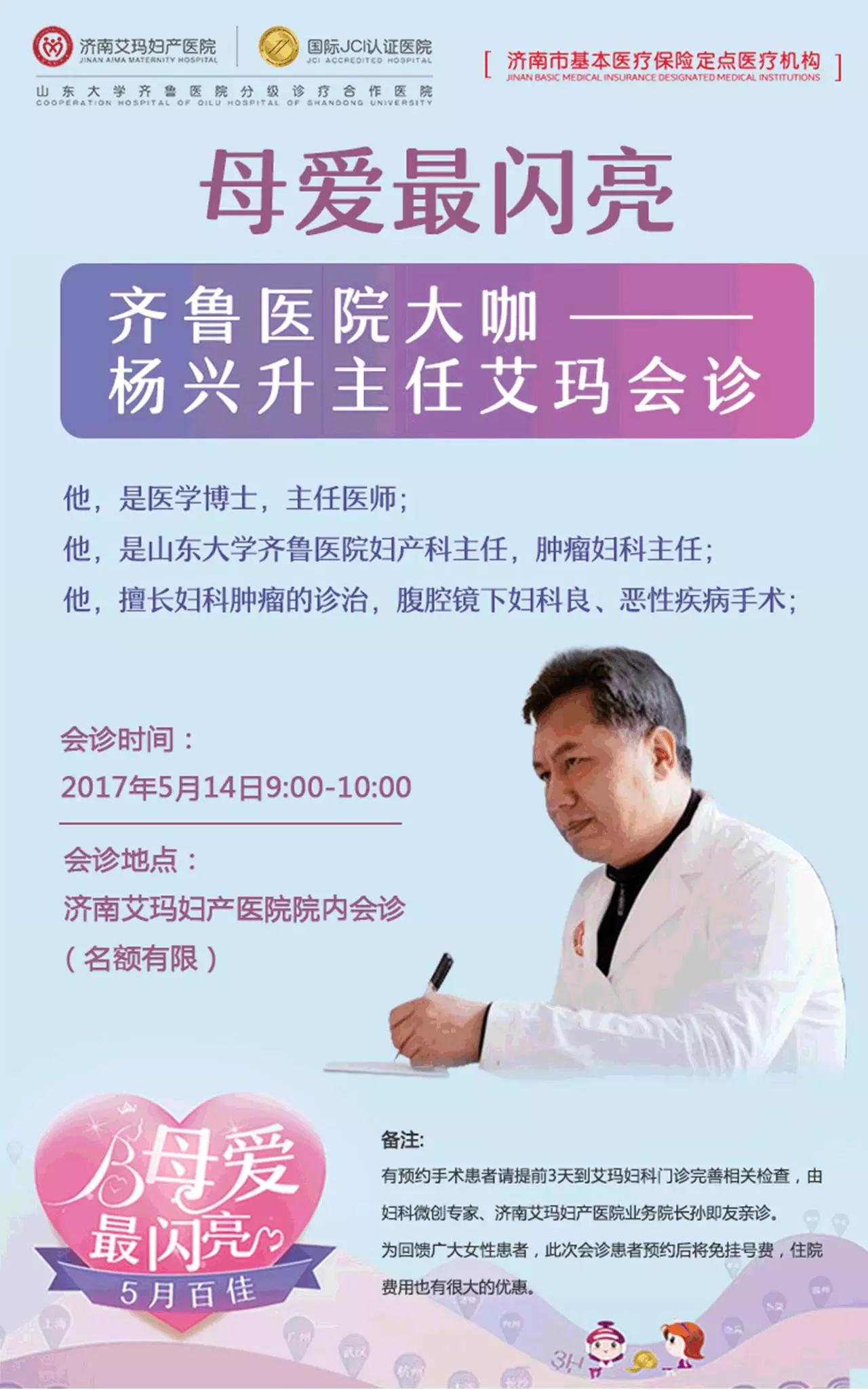 5月14日母亲节,在这个暖心的节日里,济南艾玛妇产医院特邀妇产科主任、肿瘤妇科主任杨兴升来院会诊。在2016年12月举办的“CSCCP全阴道镜规范化(手拉手)系列培训班--济南站”期间,杨兴升主任就曾在艾玛妇产为患者会诊,很多女性朋友慕名而来。