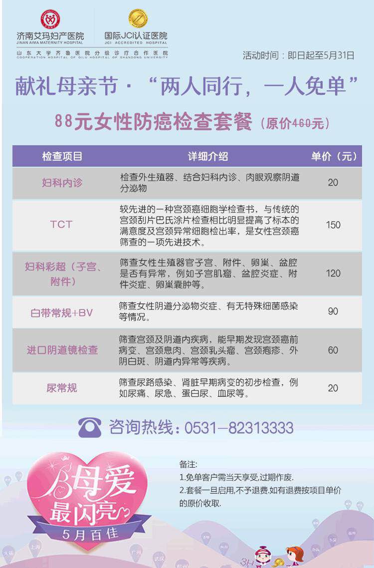 女性患者莫错过此次机会,有预约手术患者请提前3天到艾玛妇科门诊完善相关辅助检查,由妇科微创专家、济南艾玛妇产医院业务院长孙即友亲诊。为回馈广大女性患者,此次会诊患者预约后将免挂号费,住院费用也有优惠。