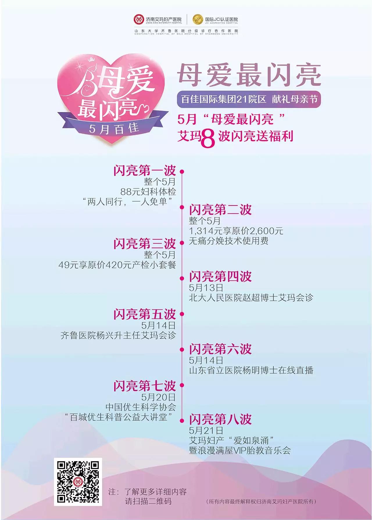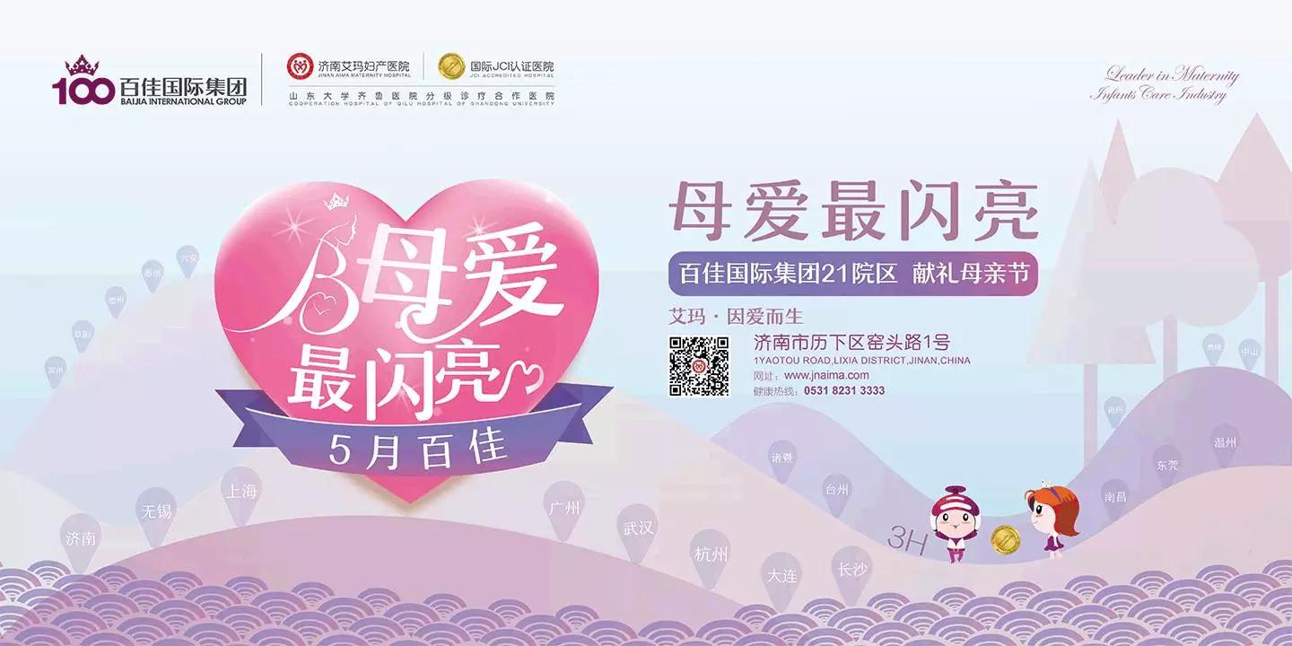 作为百佳旗下第16家妇婴医疗专业连锁机构,山东首家JCI妇产专科医院,济南艾玛妇产医院推出了“母爱闪亮,艾玛8波闪亮送福利”系列优惠和活动,回馈广大妈妈。