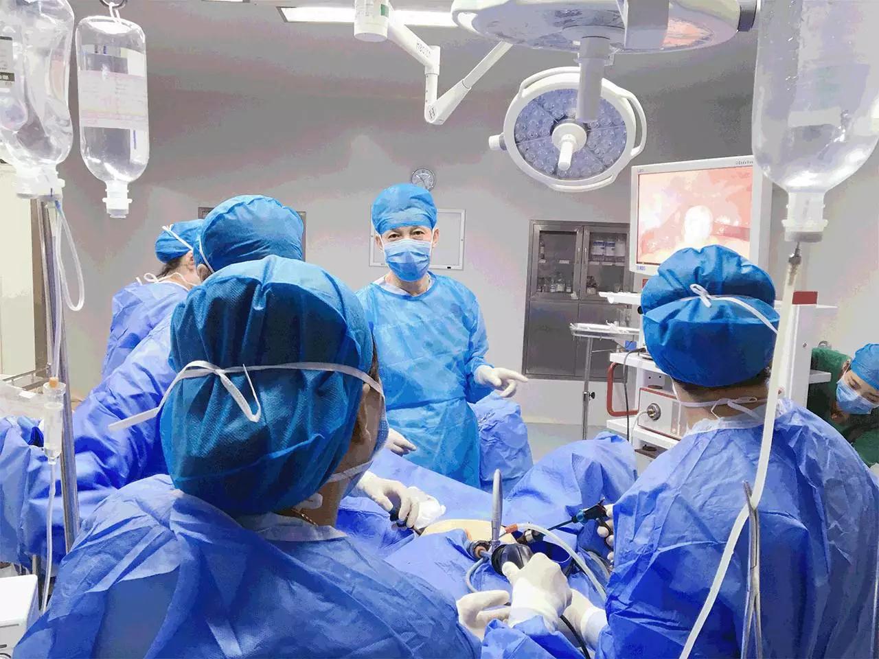 (图为济南艾玛妇产业务院长孙即友为不孕不育患者实施宫腹腔镜联合手术)
