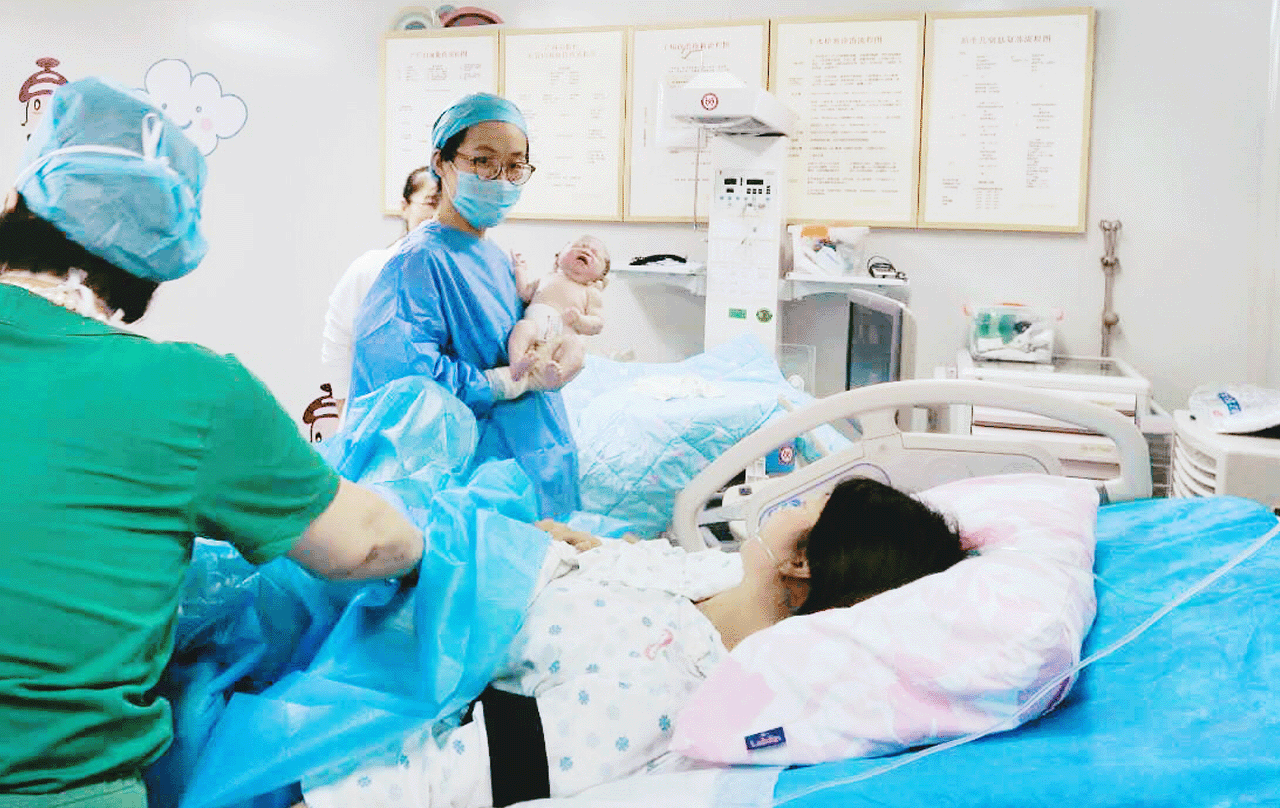 (图为艾玛妇产首例“剖宫产术后9年再孕产妇”成功自然分娩)