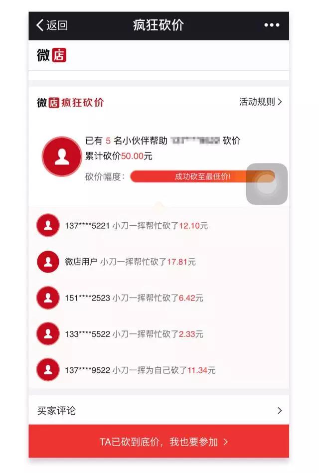 (“砍价成功”即可以当前价格购买产品,购买之前请联系微店客服哦~)