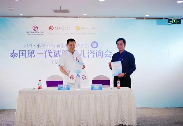 2017年6月25日,由济南艾玛妇产医院联合泰国新希望(NH)试管婴儿中心,共同主办的“2017不孕不育前沿技术分享会暨泰国第三代试管婴儿咨询会-济南站”在艾玛妇产启动,双方签署了全面的合作协议。我院会定期邀请泰国试管婴儿专家来院,由泰方为不孕不育家庭提供试管婴儿方面的服务,欢迎咨询。