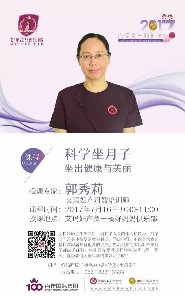 利用产后这段时间科学坐月子,让自己完成次蜕变,辣妈美丽逆袭,迎接更精彩的人生吧!本周日,来艾玛好妈妈俱乐部,艾玛妇产月嫂培训师郭秀莉教宝妈科学坐月子,坐出健康和美丽!