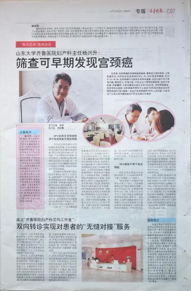 2016年,我院与签署分级诊疗技术协作协议,成立了“齐鲁医院妇产科艾玛工作室”。山东知名妇产科专家先后入驻,标志着济南艾玛妇产医院正式成为齐鲁医院分级诊疗协作单位。