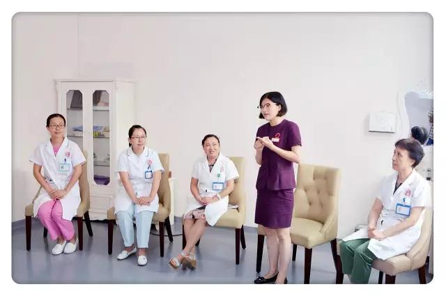 从三楼乘电梯下来,宝妈们再次坐在起,和产科门诊张莉主任、新生儿科张秀玲主任、产房护士长霍玲燕、麻醉师刘云霞、管家刘丽五位专家进行面对面的交流,对于自己孕期遇到的问题向专家提问。