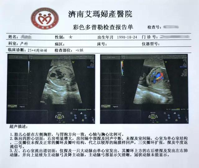 在济南艾玛妇产医院四维彩超室,朱爱莲主任仔细地为小美检查着,发现胎儿心脏存在异常情况,只有个心室,属于非常严重的胎儿心脏畸形。
