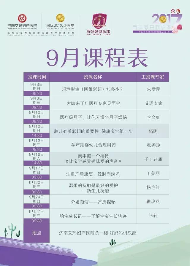 收藏 | 九月课程表新鲜出炉,为了宝宝做个不逃