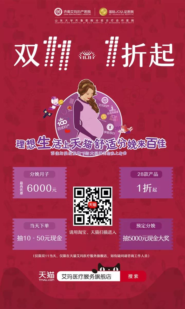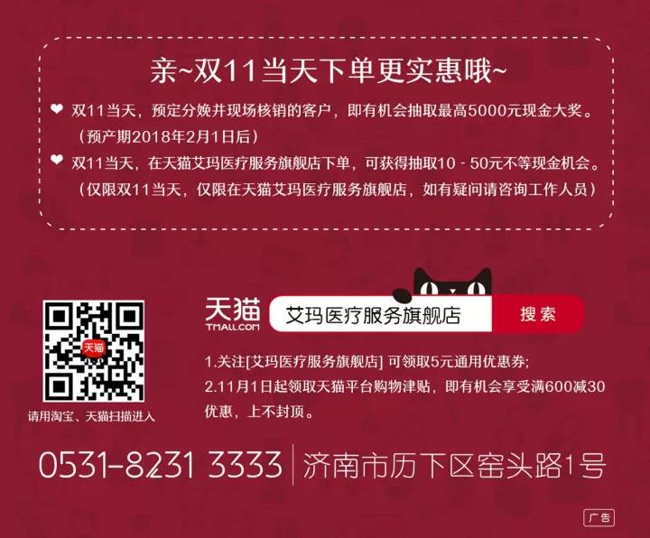 福利3:双11当天,预定分娩套餐并现场核销的客户有机会抽取高5000元现金大奖;双十当天下单,可抽取10-50元不等现金奖;双十当天没有下单但来院就诊客户,有机会获得实物抽奖机会。