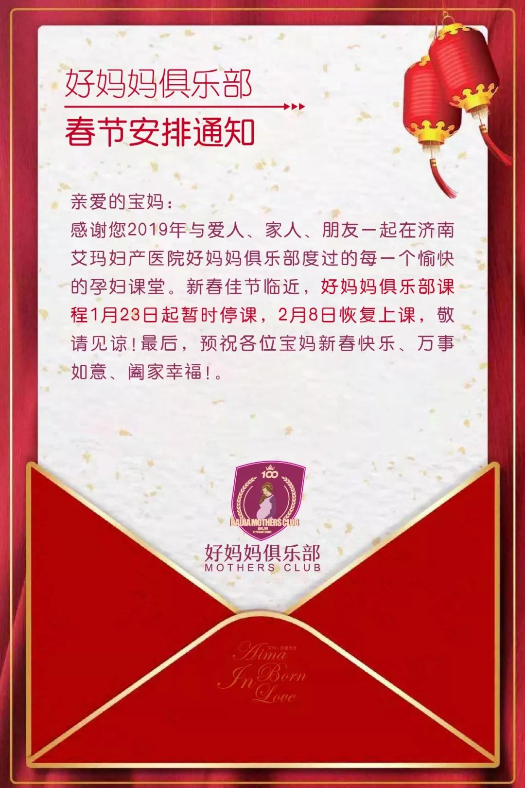 济南艾玛妇产好妈妈俱乐部春节期间安排通知