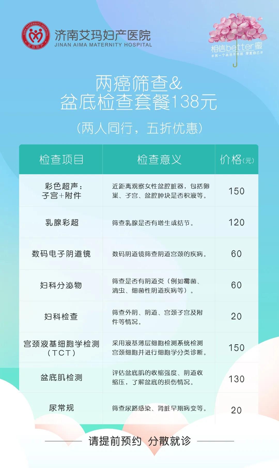 女性两癌筛查套餐138元/人