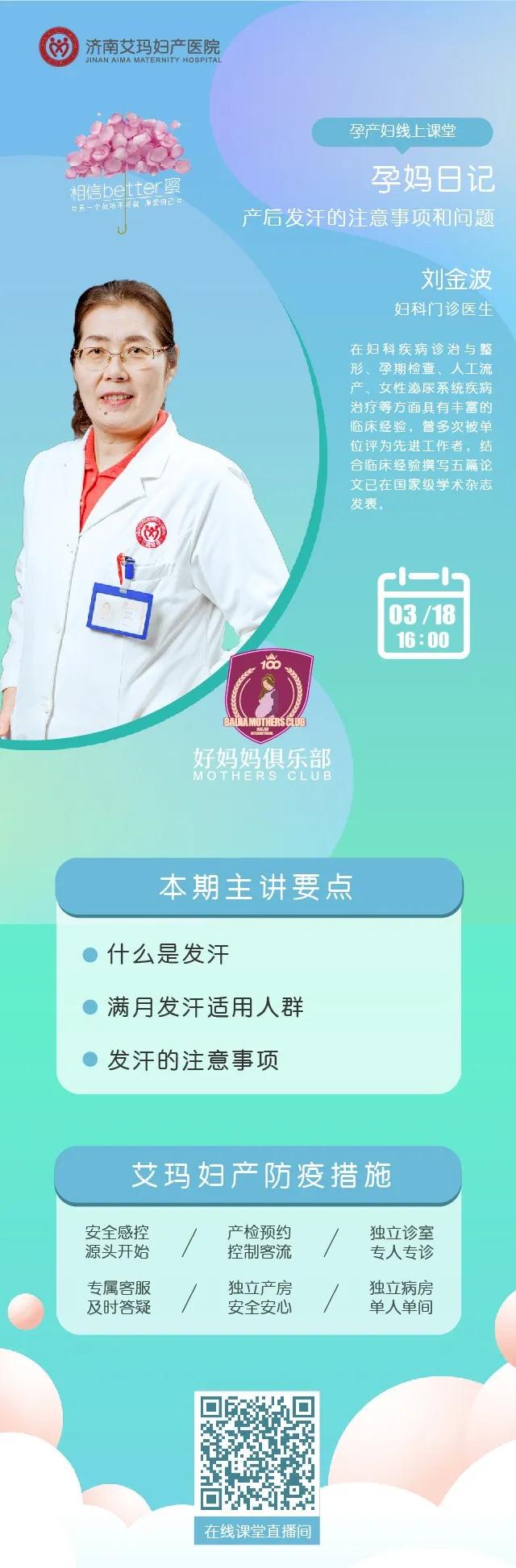 现代女性越来越重视自己的各方面健康,包括产后康复,对于很多宝妈来说,也非常看重,这样的健康理念是非常正确的,但是也需要科学的引导,很多宝妈私信小编,如何做产后发汗呢,为此,小编也特别安排了这样堂课程。就在3月18日,刘金波主任将来到直播间给大家讲讲产后发汗,宝妈们不要错过!