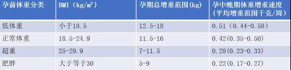 根据孕前BMI,可以计算出孕期体重可增长的范围: