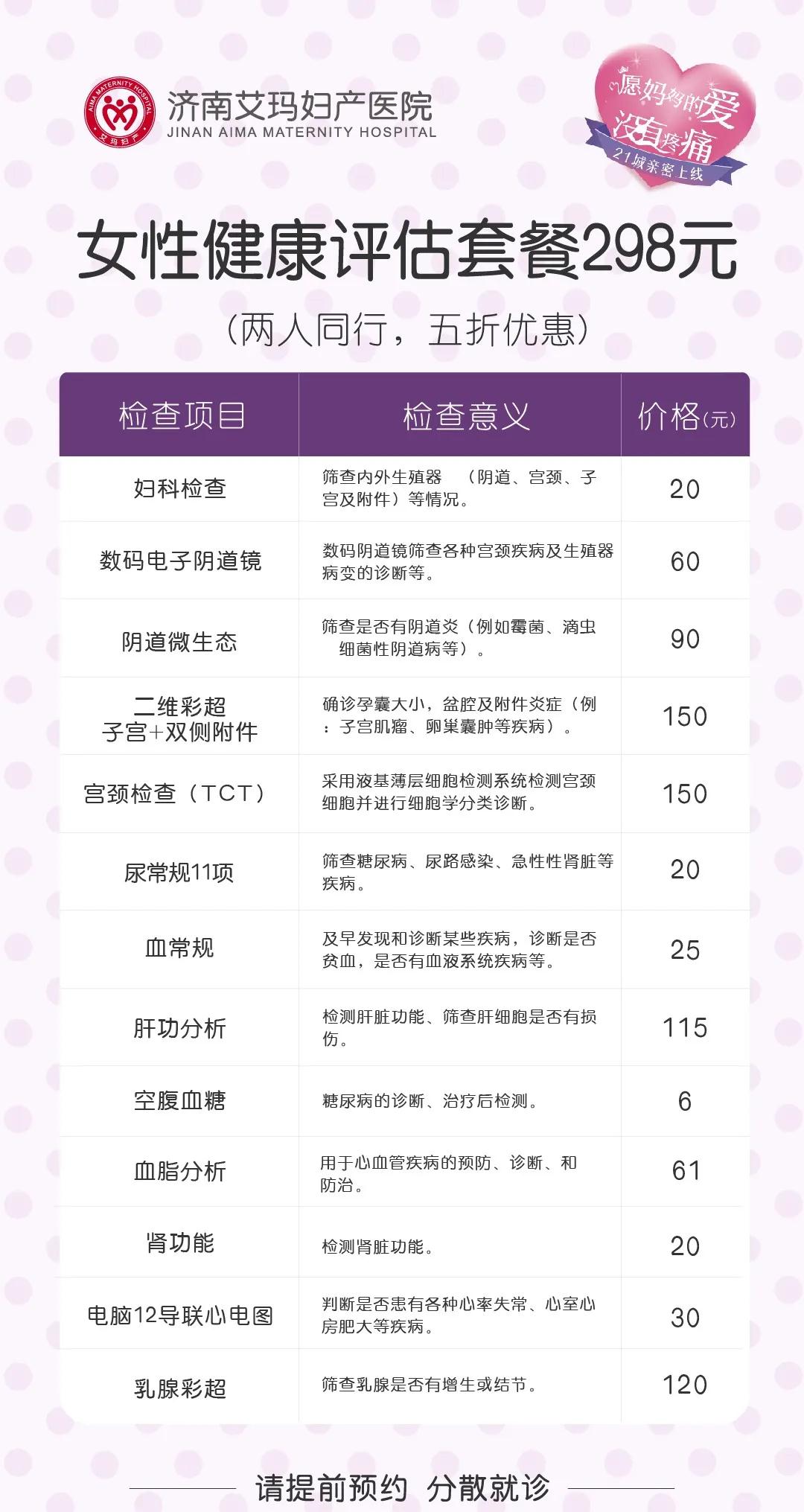 女性健康评估套餐,两人同行,五折优惠。爱自己,守护健康。