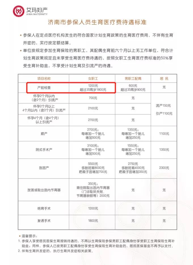 、参保人在生育保险定点医疗机构发生的符合家计划生育政策的产前检查费用,实行按人头定额结算,标准为1200元,超过35周岁(含35周岁)怀孕的增加600元。