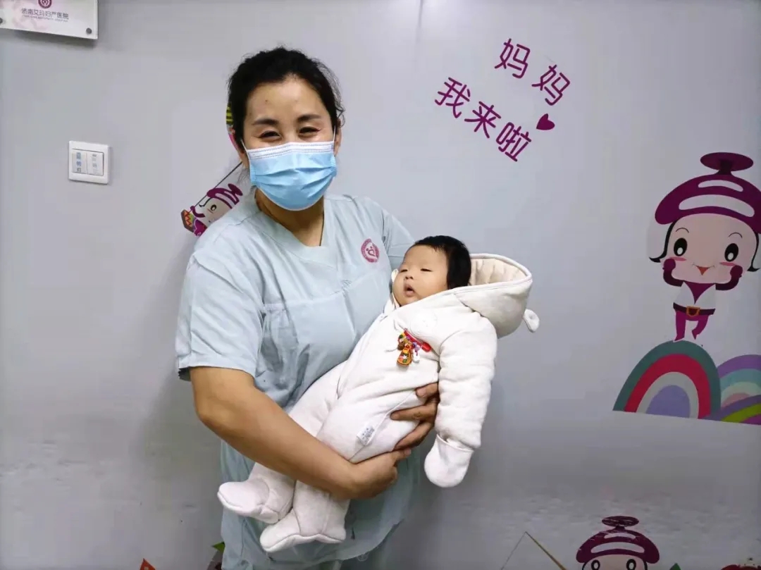 起带宝宝来到这个世界的艾玛资深助产士孟莲抱着宝宝