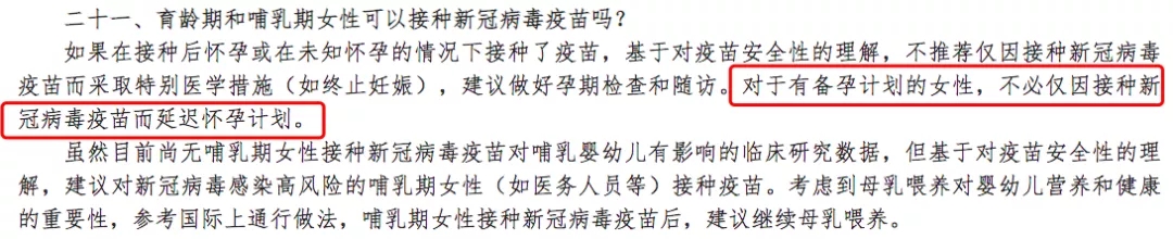 文章指出:对于有备孕计划的女性,不必仅因接种新冠病毒疫苗而延迟怀孕计划。