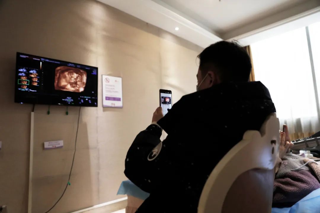 大屏幕同时播放宫内情况(躺床上可以清晰的看到胎宝宝情况),检查床旁放置舒适靠椅,支持家属陪伴检查。同时也会为孕妈妈及家属提供胎宝宝照片和视频留作纪念。